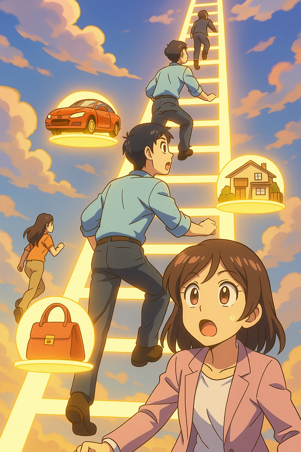 결핍의 착시는 결국 상대적 비교에서 강화된다. 연봉 5천만 원이 만족이던 사람도, 옆자리 동료가 6천만 원을 받는 순간 부족함을 느낀다. 욕망은 절대치가 아니라 비교치에 의해 증폭된다.