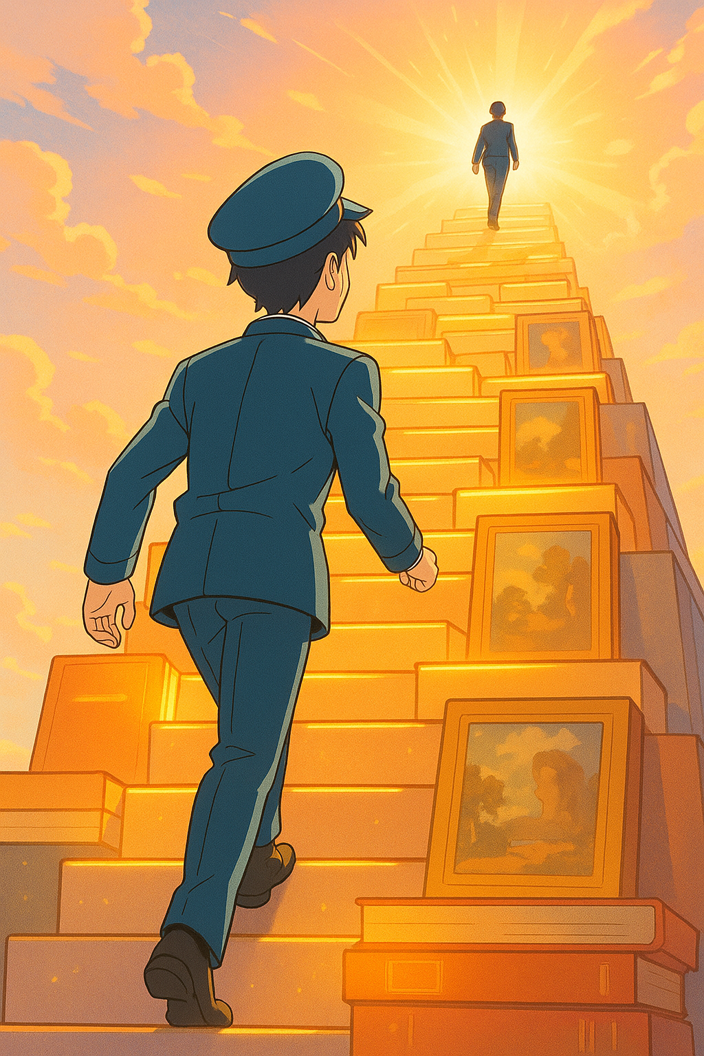 이 구두는 단순히 신발이 아니라, 그의 삶의 발자취이자 예술과 함께한 세월의 무게였다. 매일 반복되는 근무 속에서, 구두는 닳아가지만 그의 마음은 오히려 단단해졌다.