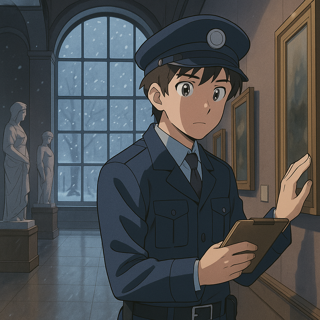 폭설의 날은 경비원에게 점검의 서사가 된다. 바닥의 미세한 균열, 프레임 뒤의 그림자, 유리 케이스의 이슬처럼 섬세한 변화들. 관람객의 발걸음이 사라지면, 경비원의 눈은 더 먼 곳과 더 가까운 곳을 동시에 본다. 그는 작품의 뒷면, 나사, 걸쇠, 케이스의 모서리 같은 기술적 세목을 더 오래 본다. 그것은 비상 시나리오의 반복학습이자, 일상의 소중함을 되불러오는 리허설이다. 다음날, 관람객이 돌아왔을 때 미술관은 더 안전하고 더 환하다.