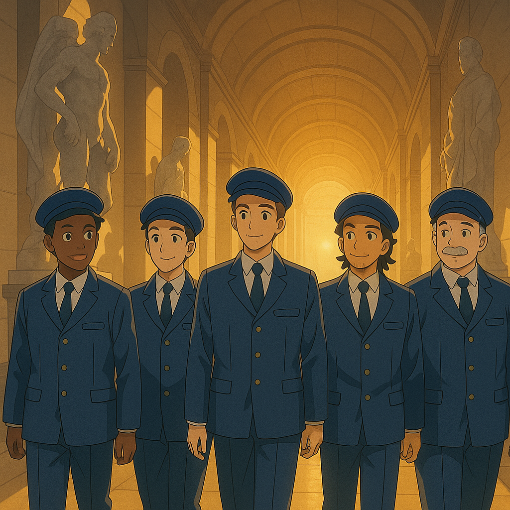 500명의 경비원은 500개의 이야기를 가진 채, 거대한 예술의 집을 함께 지켜낸다. 마치 서로 다른 색의 조각들이 모여 하나의 모자이크를 완성하듯, 그들의 존재는 미술관을 더욱 빛나게 한다.
